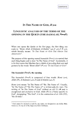 OPENING IN THE QURÂN (THE BASMALAH, ةلمسبلا)